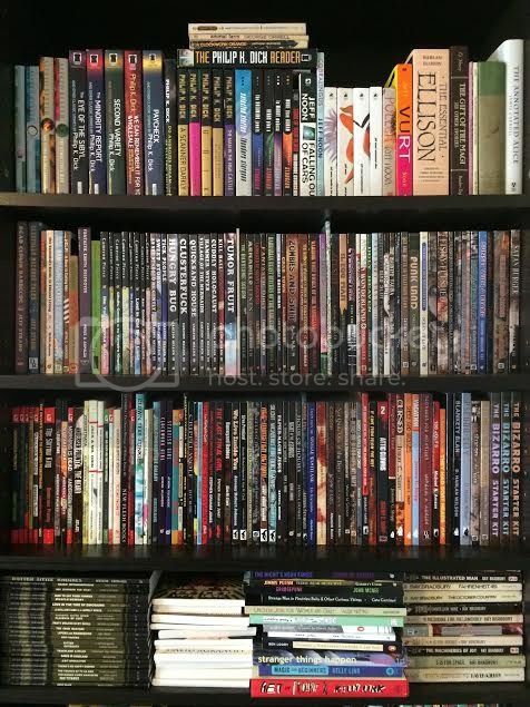 I met Scott Cole online a few years ago and then had a chance to hang out with him at BizarroCon. He likes talking books and movies, so we got along splendidly. He’s an easy guy to get along with and one someone whose passion for weird films, horror, comics, and bizarro are hard to ignore. Needless to say, I was stoked when he become a fellow NBASer. Now, besides his bizarro chops, we get to check out the stuff he’s filled his shelves with. Dig it.