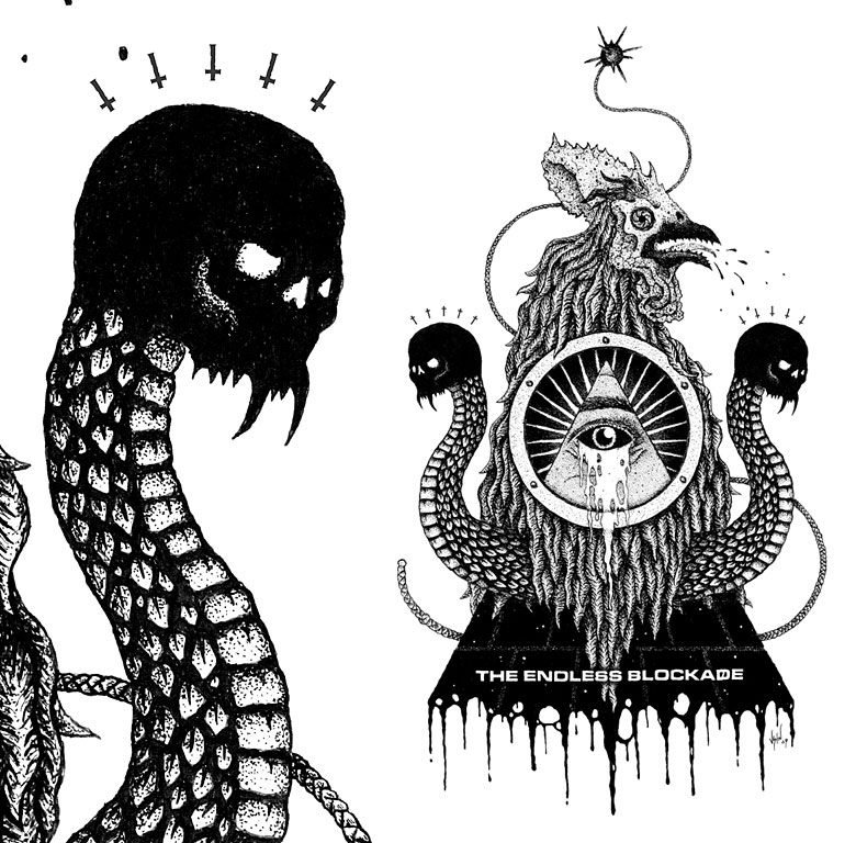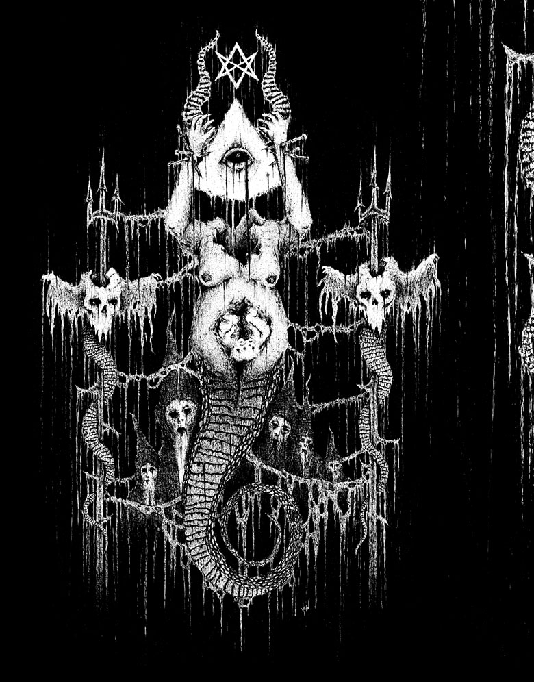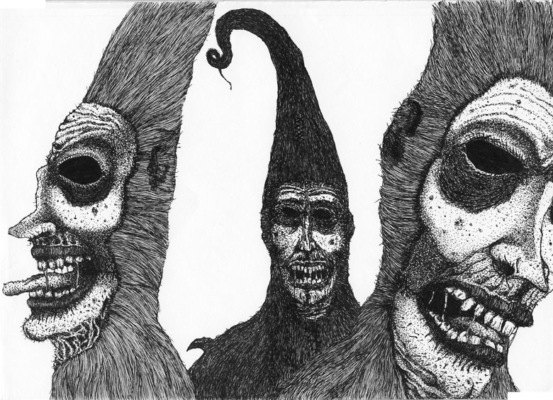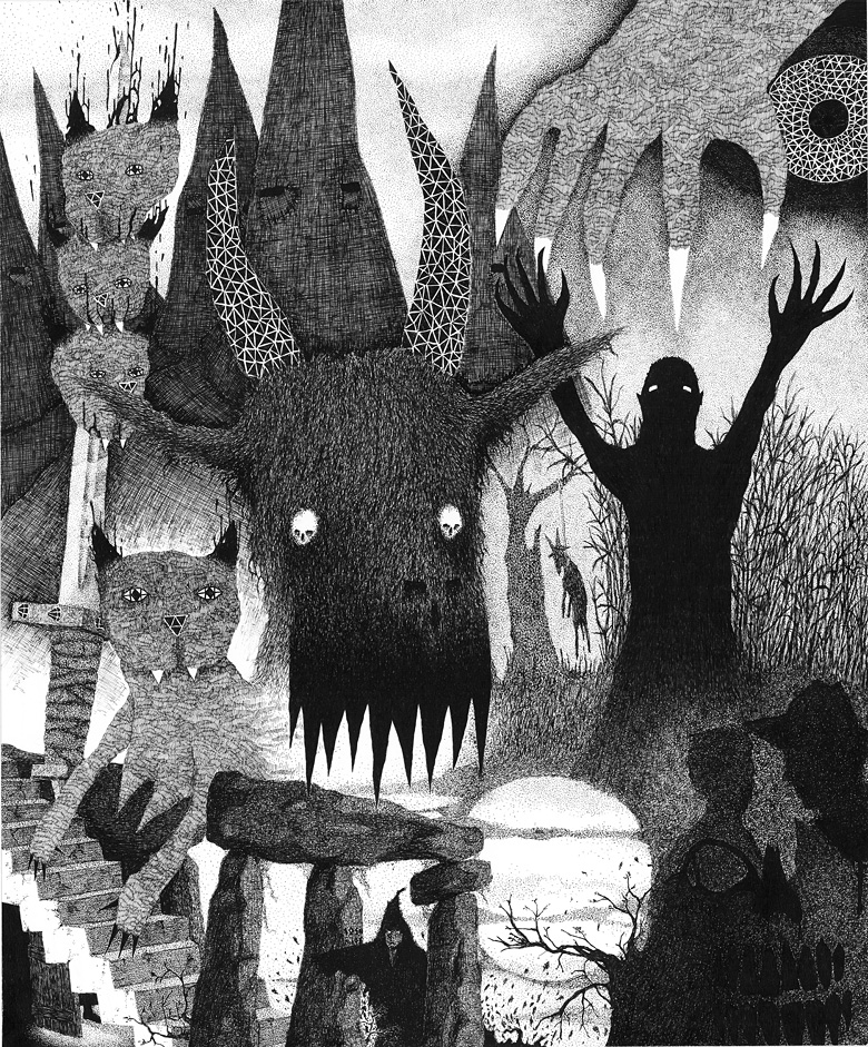 Justin Bartlett’s art is completely appropriate for this blackest of days and I just can’t get enough of it. His style is inspired by that of Nick Blinko of Rudimentary Peni (an equally amazing artist that you should totally check out). Justin has done work for bands like SUNN O))), Gorgoroth, Job For A Cowboy, and Earache Records, and has appeared in publications like Vice Magazine and Adbusters Norway. See more of his work here.
