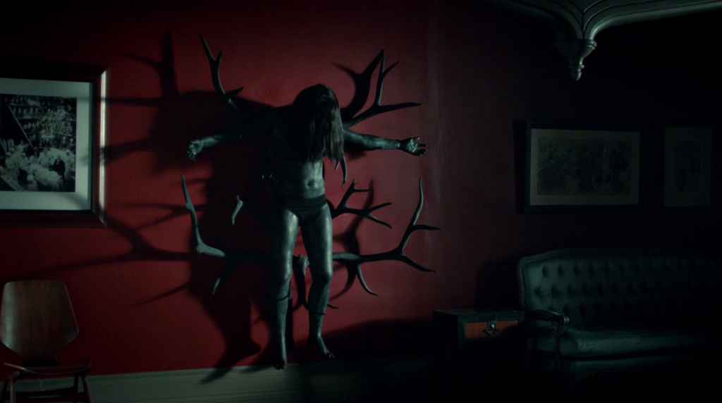 The antlers in Hannibal are then used to represent Hannibal’s cravings and killings. Dead bodies displayed on antlers are a consistent visual element that is very striking and even sadistically artistic.
