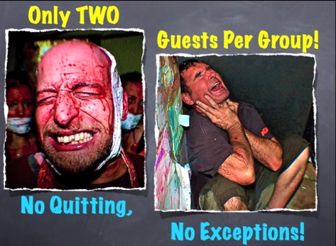 Watching this video of Russ discuss how he went too far in the last “extreme haunt,” followed by footage of a marine and adrenaline junkie rapidly losing their minds, with Russ dominating their hellish experience, is like watching a snuff film.