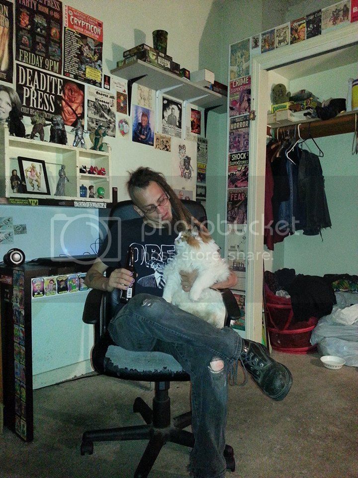 Jeff Burk was one of the first people I met outside of Facebook that quickly joined my “if you don’t like this person, you’re an asshole” list. I’ve talked books, beer, and horror with Jeff and it’s always been great. I’ve also talked about piracy, politics, the ins and outs of publishing, and even black pus and being tortured by bed bugs, and Jeff has always been cool, honest, and charismatic. Oh, and then there’s the fact that he’s one of the first bizarro authors I read and a man whose work I still dig immensely. So yeah, if you dislike Jeff, there’s something wrong with you. Here’s what he had to say about books, his shelves, his mast…er, his cat, and some upcoming books(!).