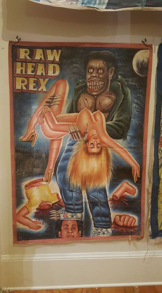 Portland Bizarros were lucky enough this week to see a gallery show of movie posters from Ghana. These posters are hand-painted on canvas or burlap sacks, and the edges are torn and ripped where they were tacked onto billboards, torn down, and then retacked as the films travel around to different theatres. What’s great about them is that they’re WEIRD. These movies are iconic in western culture, but these artists clearly had no reference for them and thus created some very interesting work. If you’re in Portland and want to check out the show, it’s being held at 2027 NE MLK Mon-Thurs 4-8pm Fri Closing 7-10pm.